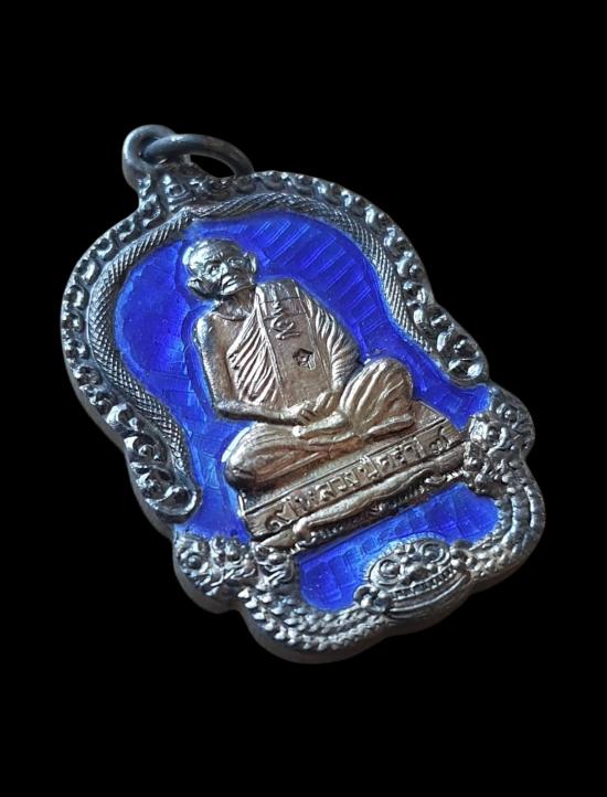 เหรียญหลวงปู่คร่ำ เนื้อเงินลงยาสีน้ำเงิน กล่องเดิม ปี2537(น้ำหนักเหรียญ 10.9กรัม)...