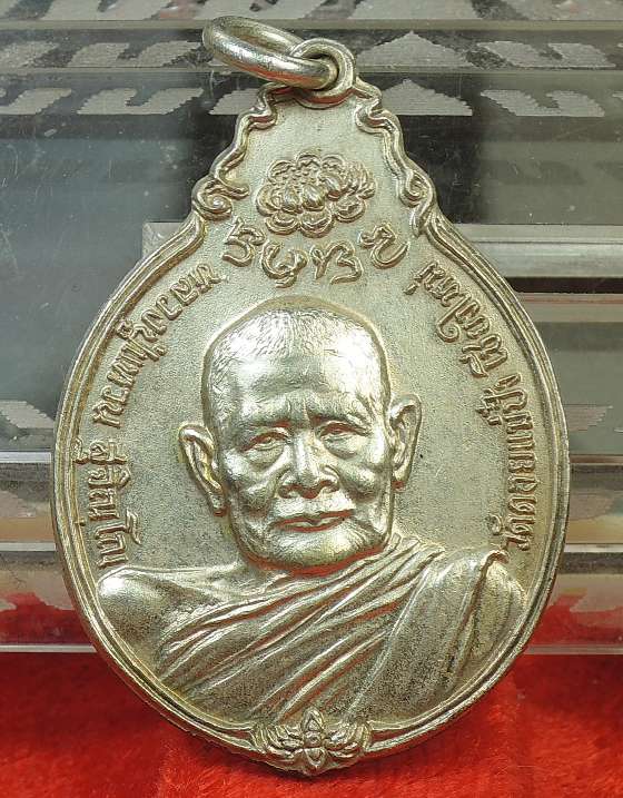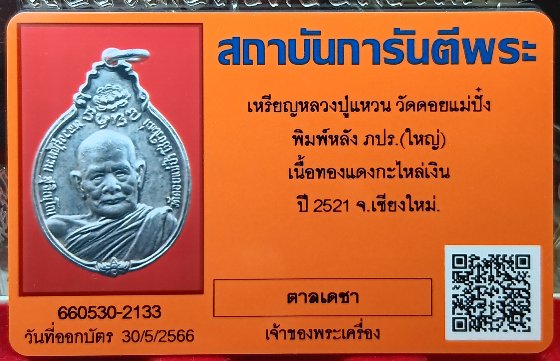 เหรียญหลวงปู่แหวน หลัง ภปร ใหญ่ เนื้อทองแดงกะไหล่เงิน บล๊อค 2 จุด พร้อมบัตรรับรอง