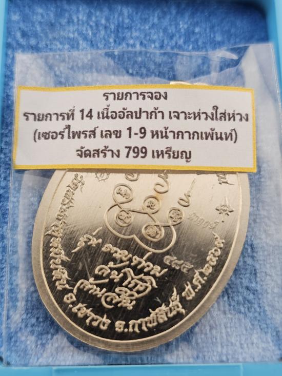 รายละเอียด หลวงปู่มหาศิลา รุ่น รวย ท่วม ล้นโกฎิ ล้านล้าน เหรียญเนื้ออัลปาก้า เจาะใส่ห่วง เลข 485