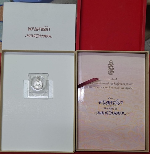 เหรียญพระมหาชนก เนื้อเงิน พิมพ์เล็ก ปี 2542 พร้อมหนังสือกล่องนอก,ในครบ สภาพสวยใหม่