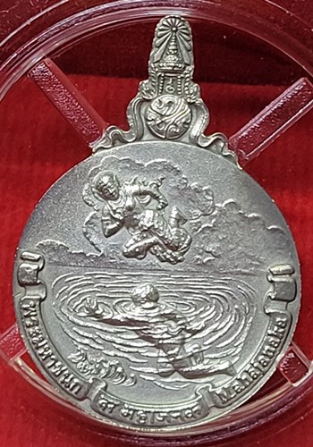 เหรียญพระมหาชนก เนื้อเงิน พิมพ์เล็ก พร้อมกล่องครบ สภาพสวยมาก สวยทั้งเหรียญ,สวยทั้งกล่อง รับประกันความแท้