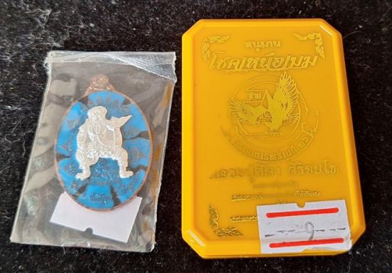 เหรียญพหูรมาน รุ่นโชคเหนือเมฆ หลวงปู่ศิลา เมตตาอธิษฐานจิต เนื้อชนวนมวลสาร มหาปราบ ลงยาลายทหาร หน้ากากเงิน ตอกพิเศษ No.60