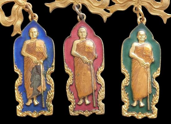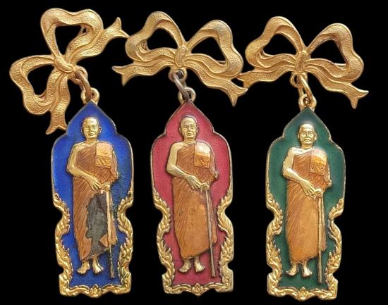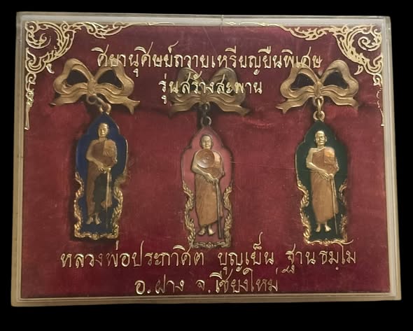 ครบชุด 3 เหรียญ กล่องเดิม หายากมากๆครับ เหรียญหลวงพ่อบุญเย็นพิมพ์ยืนรุ่นแรกชุดกรรมการปี2521 รุ่นสร้างสะพาน เนื้อกะไหล่ทองลงยามีโบว์ หลวงพ่อบุญเย็น ฐานธัมโม สำนักเจ้าพรหมมหาราช อ.ฝาง จ.เชียงใหม่