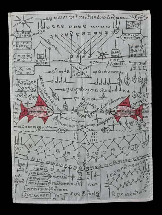 ผ้ายันต์ปลาตะเพียนคู่ จารมือ เก่ามีอายุ ไม่ทราบที่ ขนาด กว้าง 10 นิ้ว ยาว 14 นิ้ว สวยครับ |
