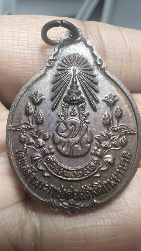 เหรียญรุ่นสร้างโรงพยาบาล หลวงปู่แหวน วัดดอยแม่ปั๋ง พิมพ์หลังภปร. เนื้อทองแดง ปี 2521