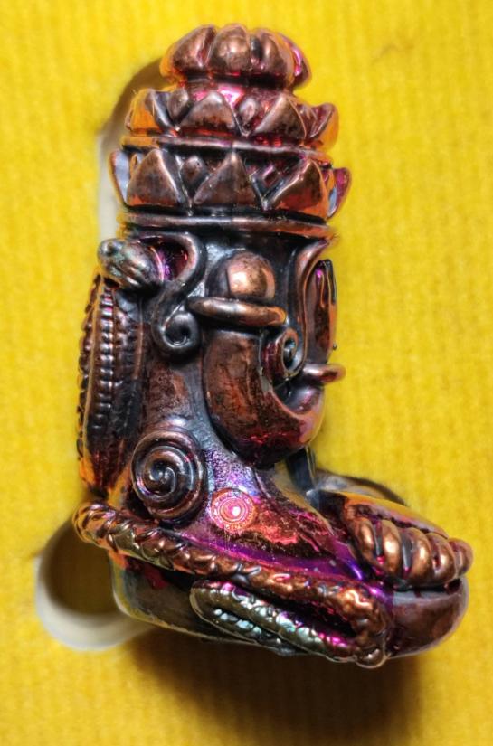 ปิดตาพังพะกาฬ เนื้อทองแดง พิมพ์กลาง รุ่น ๑ เทวาลัยจตุคามรามเทพกุยบุรี เนื้อทองแดงผิวรุ้ง สร้างโดย ท่านสรรเพชญ ปี58 (อุดผงยุคต้น ปี30) *** |