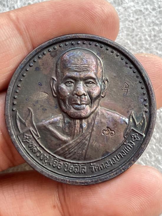 เหรียญทำน้ำมนต์หลวงปู่เจือ วัดกลางบางแก้ว นครปฐม ฉลองอายุ 76 ปี กล่องเดิมแถมสวย