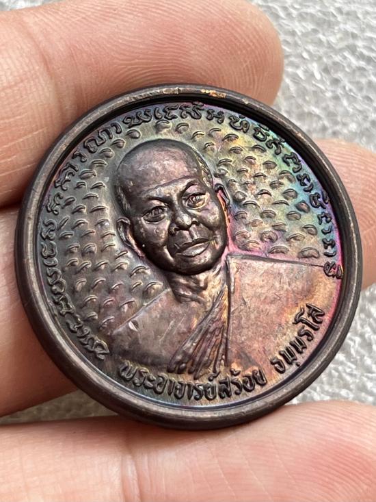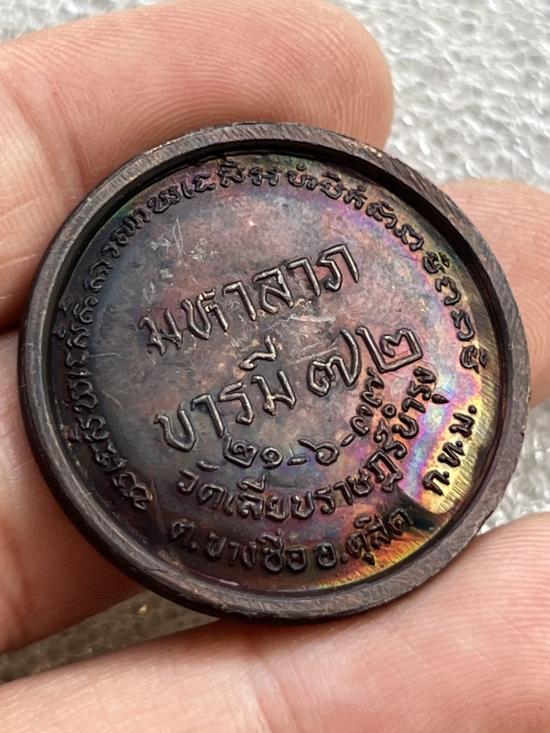 เหรียญมหาลาภ บารมี72 หลวงพ่อสร้อย วัดเลียบราษฎร์บำรุง กรุงเทพ ปี37 เนื้อทองแดงผิวรุ้งสวย