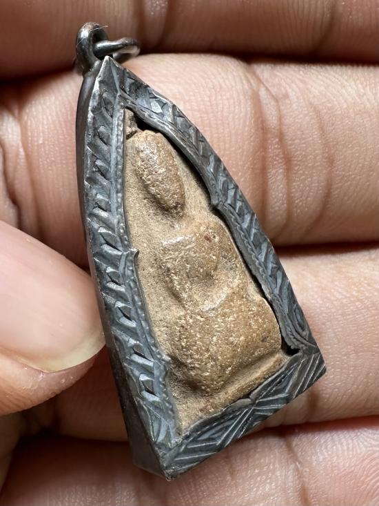 100..พระสรรค์นั่ง เนื้อดินเลี่ยมเงินเก่า