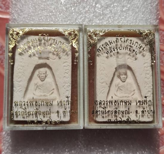 (วัดใจ)สมเด็จไตรเกษม หลวงพ่อเกษม หลังรูปเหมือน ปี2528 กล่องเดิม 2 องค์ ครับ