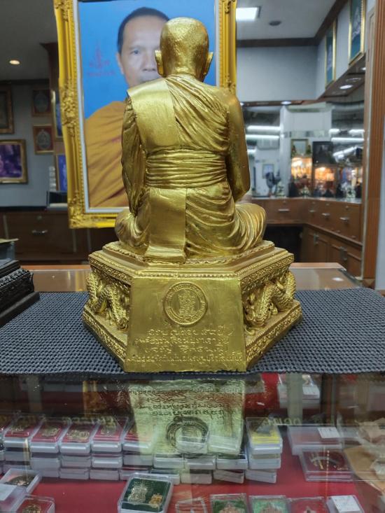 พระบูชา เจริญอายุวyฒนะ 7รอบ84ปีขนาดฐาน 7 นิ้วขนาดหน้าตัก 5 นิ้ว นั่่งงฐานพญานาค ทาสีทอง เนื้อโลหะ หลวงพ่อจรัญ วัดอัมพวัน เคาะแรก