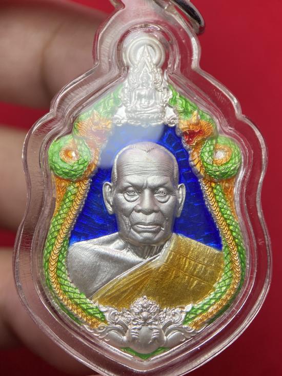 เหรียญรุ่น เจ้าสัว หลวงพ่อพัฒน์ วัดห้วยด้วน นครสวรรค์ (จัดสร้างโดย บอย ท่าพระจันทร์) เนื้อเงินลงยา 3 สีพื้นฟ้า เลข 573 เลี่ยมกรอบพร้อมใช้ พร้อมกล่องเดิม!!