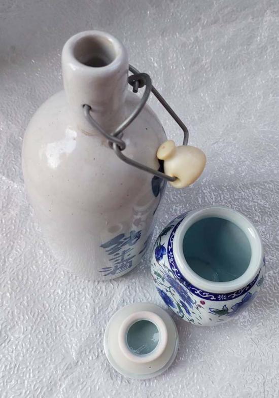 โถกับขวด กระเบื้องวินเทจมีฝาปิด