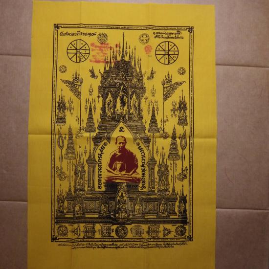 ผืนใหญ่..ขนาด19 X 29 นิ้ว... ผ้ายันต์ครอบจักรวาล 108 หลวงพ่อเกษม รุ่นพุทธคุณ ปี2538 เลข 550 ... 69.1.15