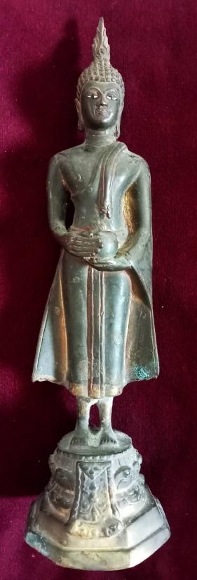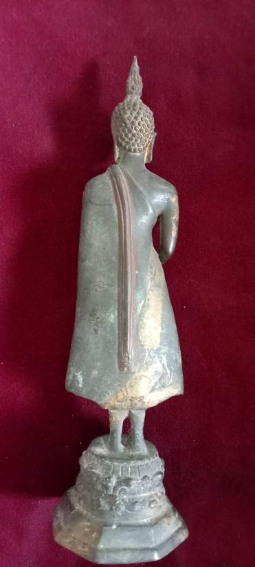 พระบูชา ปางอุ้มบาตร ขนาดสูงประมาณ 10 นิ้ว ตามุก ประทับยืนบน ฐาน 8 เหลี่ยม มีบัวคว่ำบัวหงายและผ้าทิพย์ หล่อสองถอดแต่เชื่อมติดกัน เนื้อทองเหลืองเก่าสีคร่ำเริ่มออกแดง เกิดสนิมหยกและสนิมแดงขึ้นประปรายทั่วองค์พระ สภาพเก่าหลายสิบปีศิลป์ประณีตสวยตามรูป ส่งฟรีทั่วไทย รับประกันตามกฎครับ