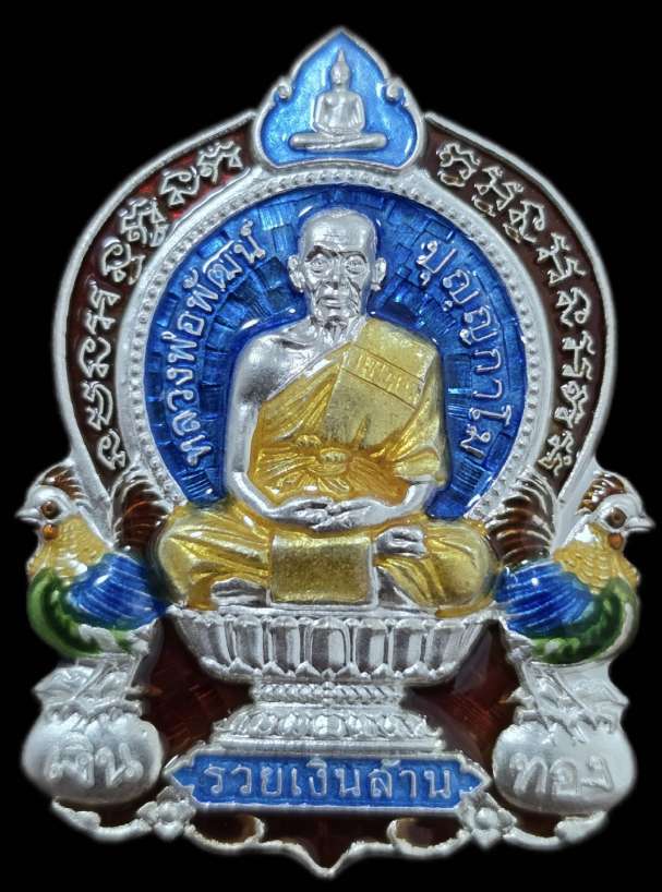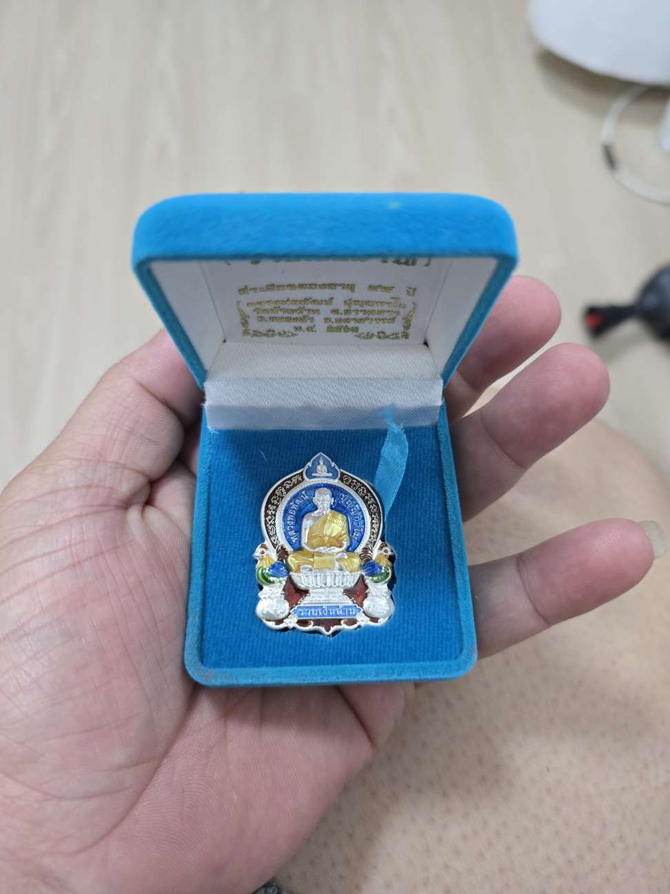 เหรียญหลวงพ่อพัฒน์ วัดห้วยด้วน รุ่นรวยเงินล้าน ปี2563 เนื้อเงิน ลงยาพื้นน้ำเงินเลข 365