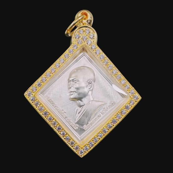 พระอาจารย์ต้อม วัดท่าสะแบง จ.ร้อยเอ็ด เหรียญพรหมจินดามณี มหาลาภสมปราถนา เนื้อเงินตั้งธาตุ ตอกโค้ต 63 พร้อมกรอบทองอิตาลีและกล่องเดิม