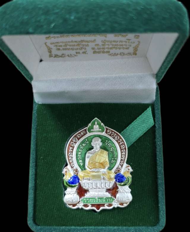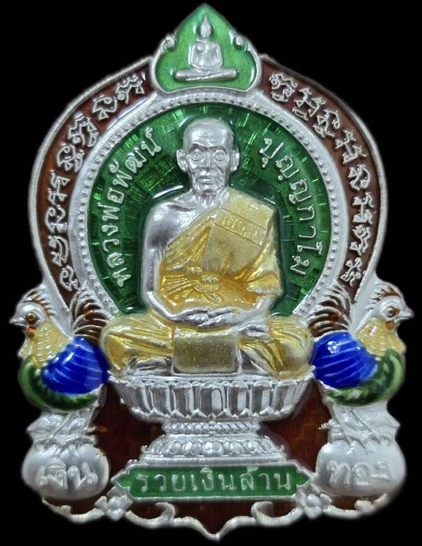 เหรียญหลวงพ่อพัฒน์ วัดห้วยด้วน รุ่นรวยเงินล้าน ปี2563 เนื้อเงิน ลงยาพื้นสีเขียวเลข 1006