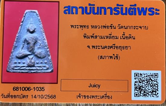 เคาะเดียวพระพุทธ หลวงพ่อขัน วัดนกกระจาบ พิมพ์สามเหลี่ยม เนื้อดิน จ.พระนครศรีอยุธยา