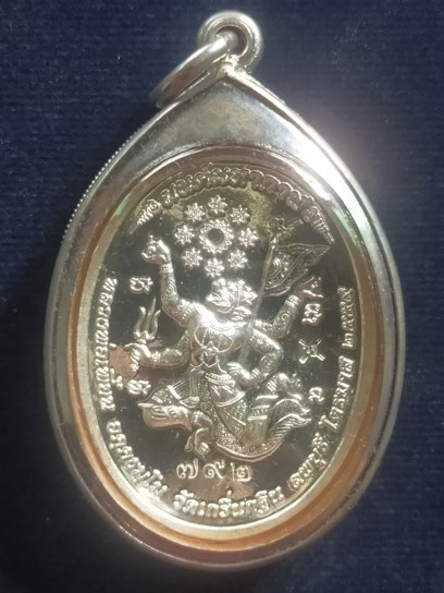 เหรียญมนต์มหากาฬไตรมาส59 เนื้อเงิน หลวงพ่อเพี้ยน หลังหนุมานหาวเป็นดาวเป็นเดือน เลขสวย๙๗๒