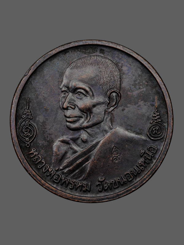 เหรียญกลมหลังยันต์เกราะเพชร หลวงพ่อพรหม วัดขนอนเหนือ ปี 2529