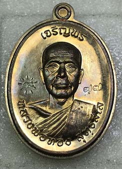 หลวงพ่อทอง วัดบ้านไร่ เหรียญเจริญพร พิมพ์กรรมการสองหน้า หน้าเงิน - หลังนวะ เบอร์77