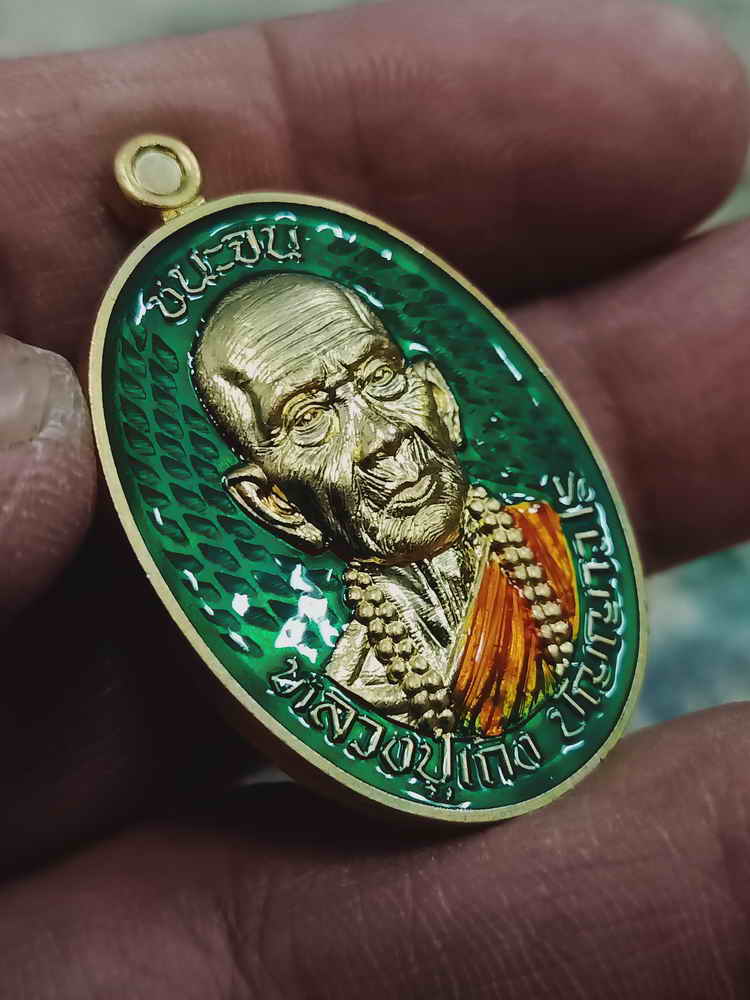 วัดใจ 100 เหรียญชนะจน วัดสร้าง หลวงปู่เถิง วัดบ้านอาลัย จ.ศรีสะเกษ 2567 ทองทิพย์ ลงยาเขียว หมายเลข 26 กล่องเดิม