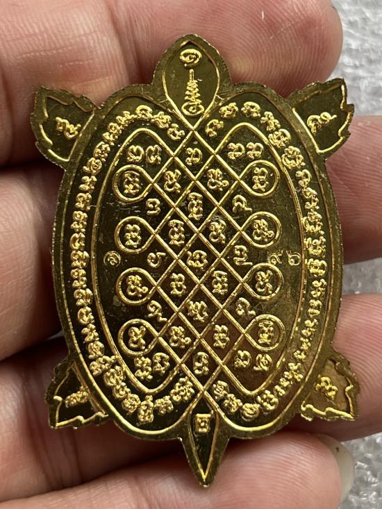 เหรียญพญาเต่าเรือน รวยเงิน รวยทอง หลวงปู่แสน วัดบ้านหนองจิก เนื้อทองทิพย์ลงยาแดงหน้ากากเงินแท้ หมายเลข96. สวยเดิม