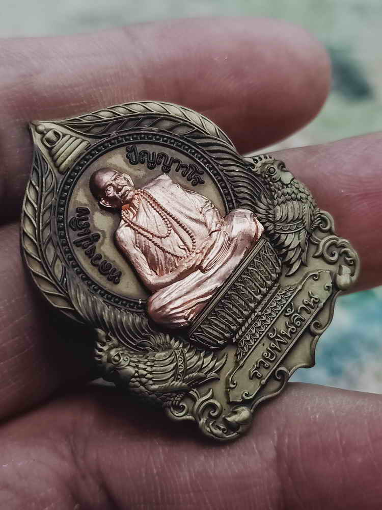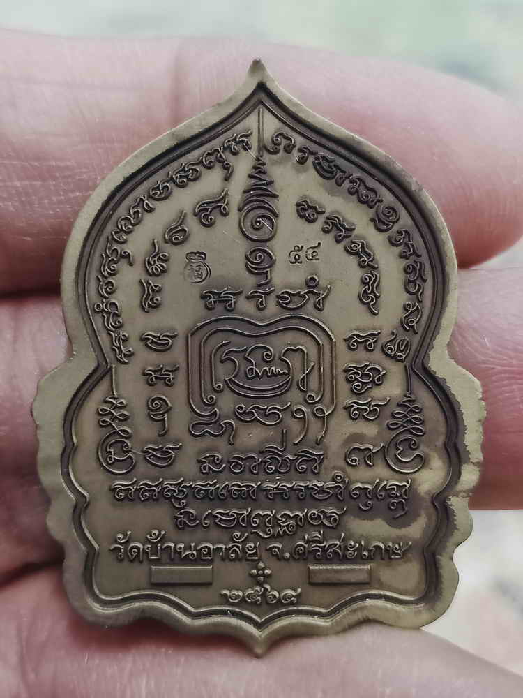 วัดใจ 100 เหรียญนั่งพาน รวยพันล้าน หลวงปู่เถิง วัดบ้านอาลัย จ.ศรีสะเกษ 2564 ทองทิพย์ซาติน หน้ากากทองแดง หมายเลข 54 กล่องเดิม