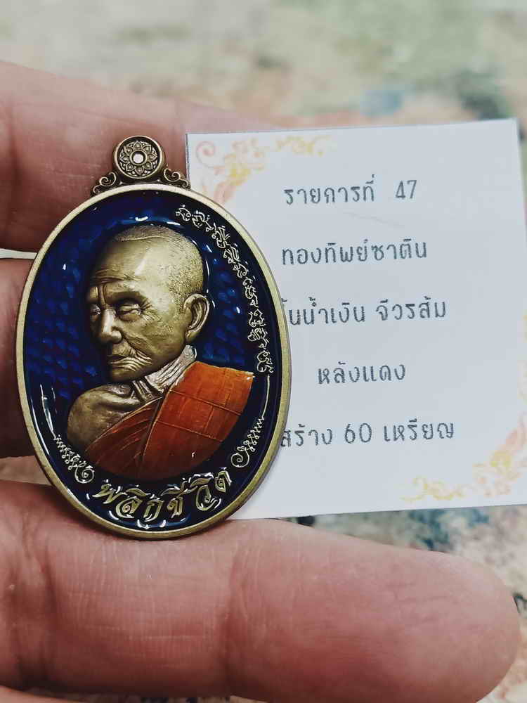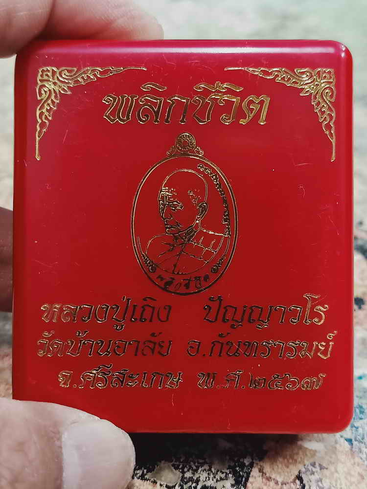 วัดใจ 100 เหรียญพลิกชีวิต หลวงปู่เถิง วัดบ้านอาลัย จ.ศรีสะเกษ 2567 ทองทิพย์ซาติน ลงยาหน้า หลัง หมายเลข 37 สร้าง 60 กล่องเดิม