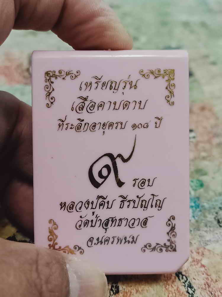 วัดใจ 100 เหรียญเสมาเสือคาบดาบ 9 รอบ หลวงปู่คีบ ธีรปัญโญ อายุ 108 ปี วัดป่าสุทธาวาส จ.นครพนม ปี 2567 ตะกั่ว หน้ากากนวะ หมายเลข 115 กล่องเดิม