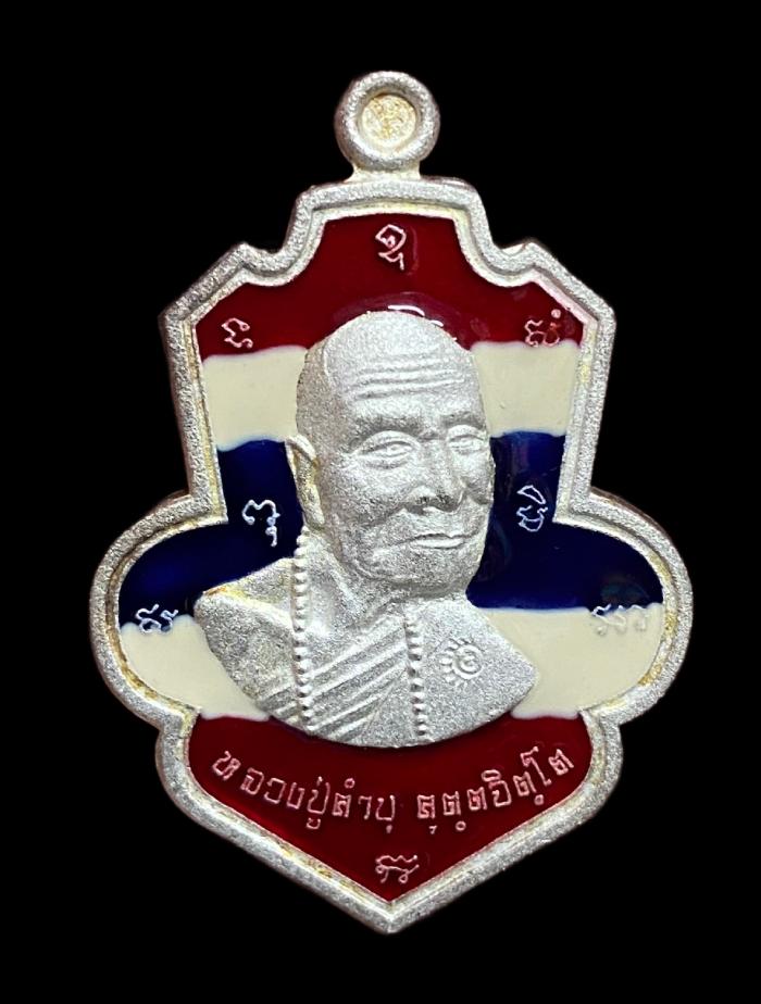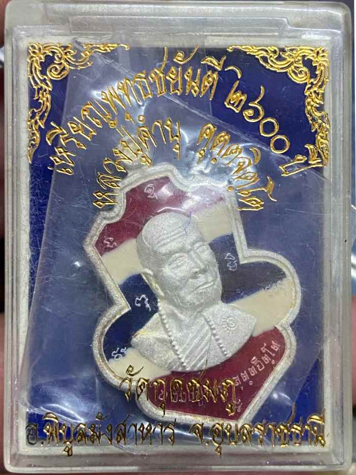 เหรียญพุทธชยันตี หลวงปู่คำบุ คุตตจิตโต วัดกุดชมภู จ.อุบลราชธานี เนื้อชุบเงินพ่นทราย ลายธงชาติ หมายเลข 92