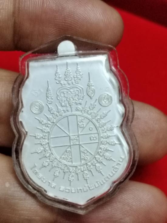 เหรียญหลวงพ่อรวย วัดตะโก อยุธยา รุ่นไตรมาส รวยทรัพย์แสนล้าน เนื้อเงินลง ลงยาน้ำเงิน