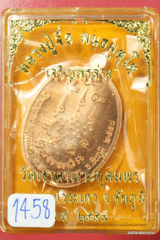 เหรียญหลวงปู่จื่อ รุ่นเจริญพรล่าง ปี 2558 เนื้อทองแดง หมายเลข 1458