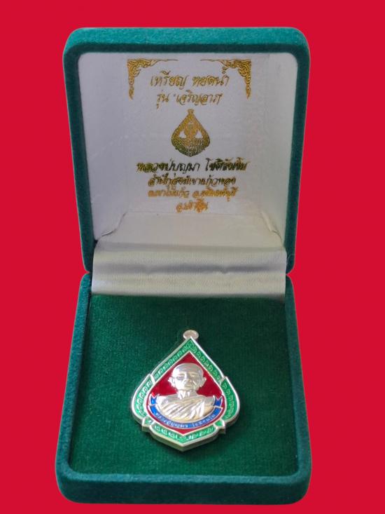เหรียญหยดน้ำ เจริญลาภ หลวงปู่บุญมา สำนักสงฆ์เขาแก้วทอง จ.ปราจีนบุรี เนื้อเงินลงยา หมายเลข54 สวยพร้อมกล่อง(น้ำหนักเงิน14.76g) |