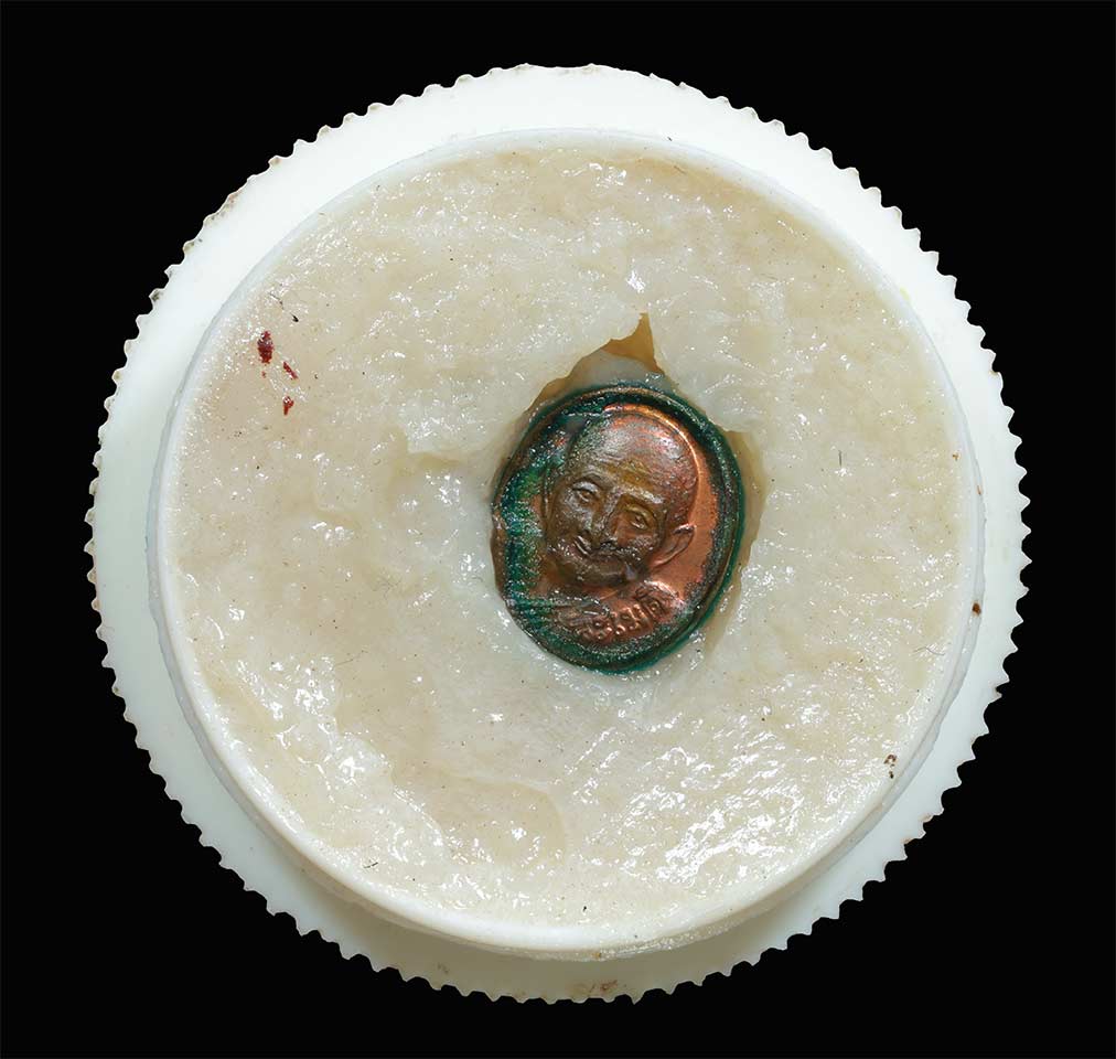 สีผึ้ง หลวงปู่หงษ์ พรหมปัญโญ วัดเพชรบุรี(สุสานทุ่งมน) จ.สุรินทร์ ฝังเม็ดยา ปี2555 เดิมๆ
