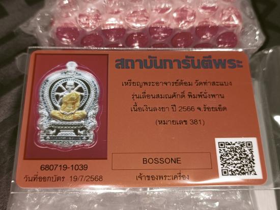 เคาะเดียว วัดความแรง เหรียญพระอาจารย์ต้อม วัดท่าสะแบง จ.ร้อยเอ็ด เหรียญนั่งพาน รุ่นเลื่อนสมณศักดิ์ เนื้อเงินลงยา เลขมงคลสวยๆมาพร้อมกล่อง รับประกันแท้ครับเลื่อนสมณศักดิ์ อายุวัฒนมงคล สร้าง 399 เหรียญ เลข 381 พร้อมใบเซอร์