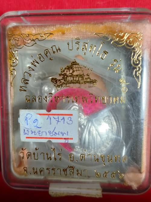 เหรียญหลวงพ่อคูณ ปริสุทโธ รุ่น ฉลองวิหารเทพ ออกวัดบ้านไร่ ปี 56 เนื้อ เงินลงยาสีชมพู หมายเลข 1713 เลี่ยมพร้อมใช้ เคาะเดียวแดง |