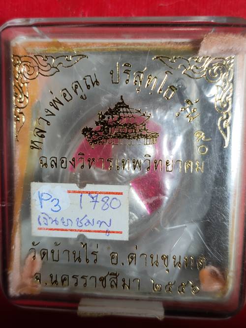 เหรียญหลวงพ่อคูณ ปริสุทโธ รุ่น ฉลองวิหารเทพ ออกวัดบ้านไร่ ปี 56 เนื้อ เงินลงยาสีชมพู หมายเลข 1780 เลี่ยมพร้อมใช้ เคาะเดียวแดง |