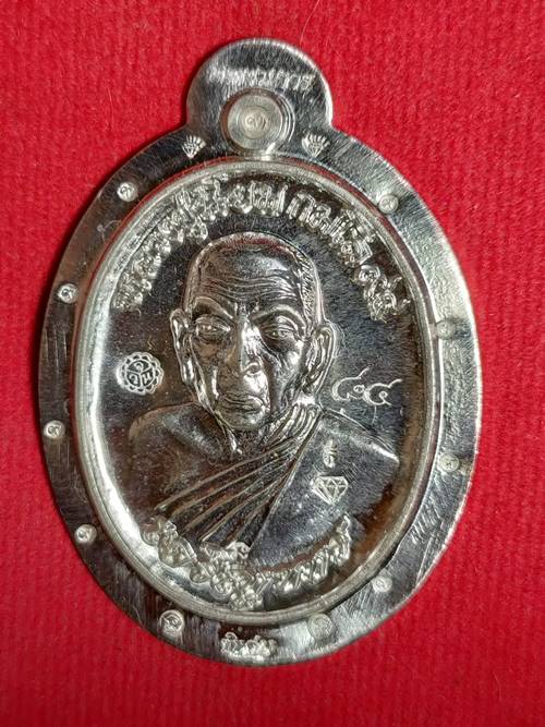 เหรียญหลวงปู่นิยม กมโล รุ่น เจริญพรเมตตา มหานิยม ออกวัดแจ้งนอก ปี 2555 เนื้อ เงินพิมพ์กรรมการไม่ตัดปีกหลังยันต์ หมายเลข 84 ตอกโค๊ตเลข 9 เก้าตัว สภาพสวย เคาะเดียวแดง