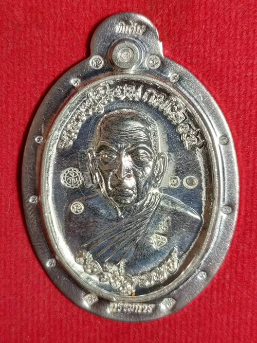 เหรียญหลวงปู่นิยม กมโล รุ่น เจริญพรเมตตา มหานิยม ออกวัดแจ้งนอก ปี 2555 เนื้อ เงินพิมพ์กรรมการไม่ตัดปีกหลังแบบ หมายเลข 10 ตอกโค๊ตเลข 9 เก้าตัว สภาพสวย เคาะเดียวแดง
