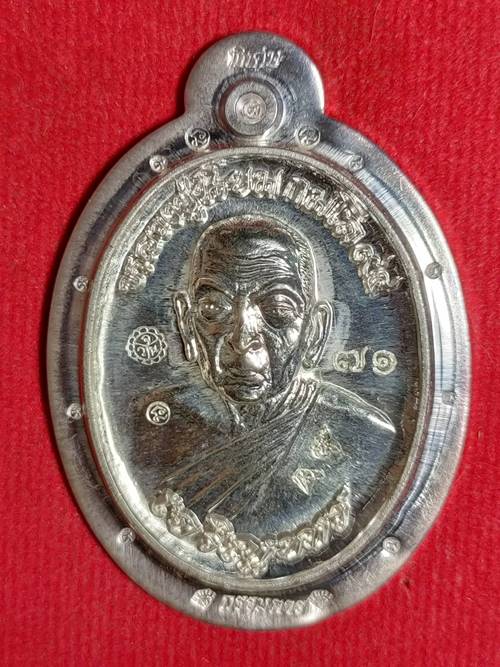เหรียญหลวงปู่นิยม กมโล รุ่น เจริญพรเมตตา มหานิยม ออกวัดแจ้งนอก ปี 2555 เนื้อ เงินพิมพ์กรรมการไม่ตัดปีกหลังแบบ หมายเลข 71 ตอกโค๊ตเลข 9 เก้าตัว สภาพสวย เคาะเดียวแดง