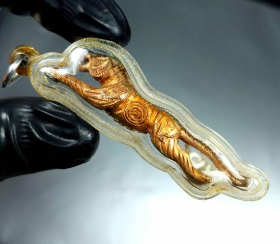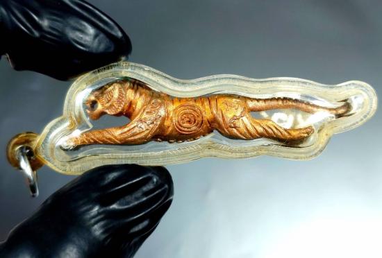 วัดใจ เสือปืนแตก รุ่น 5 หลวงปู่แย้ม วัดตะเคียน นนทบุรี เลี่ยมกรอบพร้อมสายสินธ์เดิมของวัด