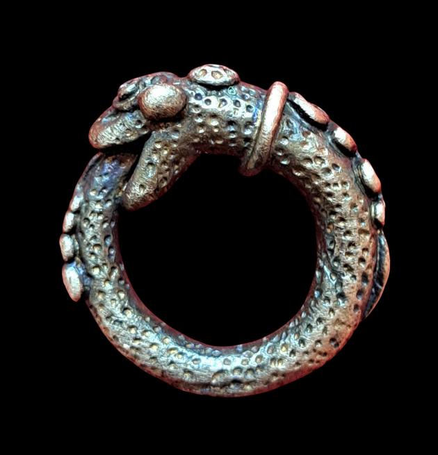 แหวนงูกินหาง บ่วงนาคราช หลวงพ่อรัช วัดกะเปา (วัดโกศาวาส) จ.สุราษฎร์ธานี ปี 2537 เนื้อสัมฤทธิ์แก่เงิน(เคาะเดียว) |