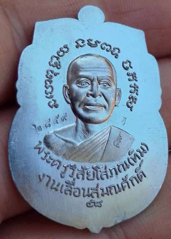 เหรียญเลื่อนสมณศักดิ์หลวงปู่ทวดปี 58 เนื้อตะกั่วไม่ตัดปีก (ชุดเนื้อเงินหน้ากากทองคำ) ตอก Number 2859 พร้อมกล่องเดิมสภาพสวย |