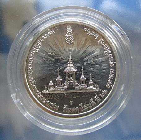 @# เหรียญเนื้อเงิน ที่ระลึกพระราชพิธีถวายพระเพลิงพระบรมศพ ร.9 พร้อมตลับพลาสติกใส และใบเซอร์ ไม่มีกล่อง เหรียญ ผ่าศูนย์กลาง 35 มม. โลหะเงินร้อยละ 92.5 นน.22 กรัมครับ เหรียญสวยเดิม ไม่ได้ใช้ ไม่มีกล่องครับ