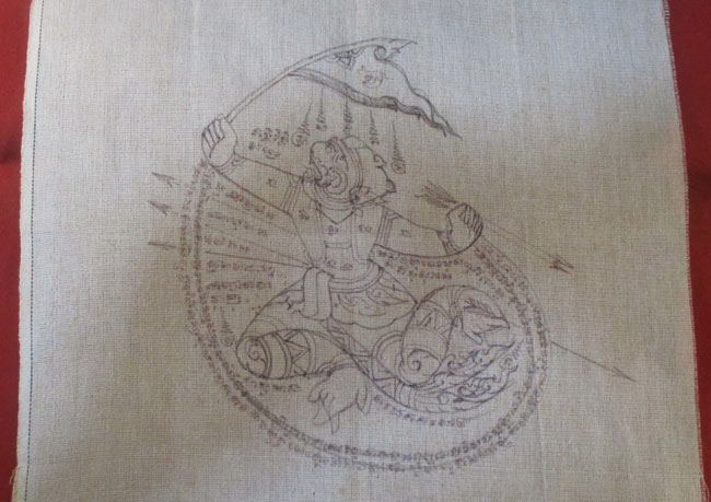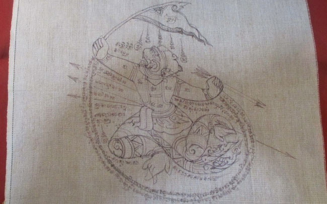 ผ้ายันต์ ไม่ทราบที่ จารยันต์ด้วยมือ ครับ