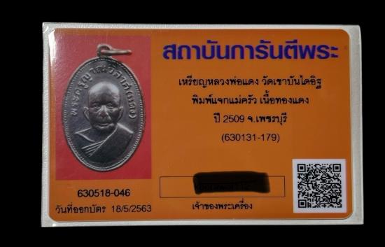 เหรียญหลวงพ่อแดง วัดเขาบันไดอิฐ รุ่นแจกแม่ครัว เนื้อทองแดง ปี 2509สภาพสวยเดิม พร้อมบัตรรับรอง