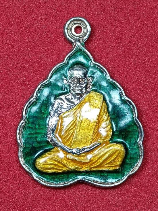 เหรียญใบโพธิ์หลวงปู่คร่ำครับ เนื้อเงินลงยาเขียว หนัก 8.4 กรัม ยาเต็มไม่มีกระเทาะลั่นร้าว ตอกโค๊ต นะ สังฆาฏิ