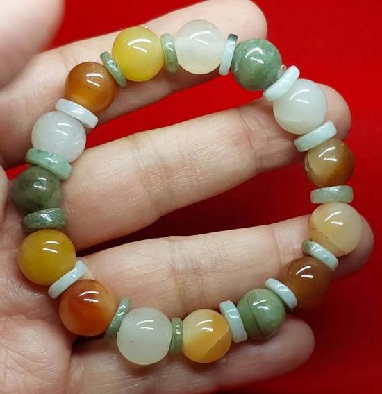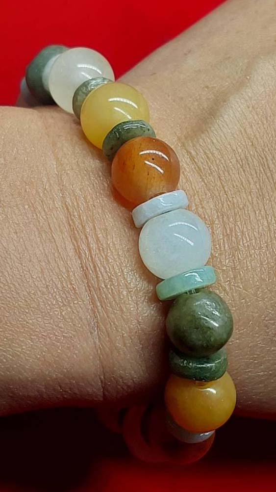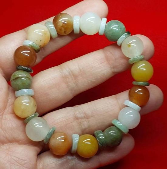 ***วัดใจ***สร้อยข้อมือ หยกพม่าแท้ 5 สี หยกธรรมชาติ |